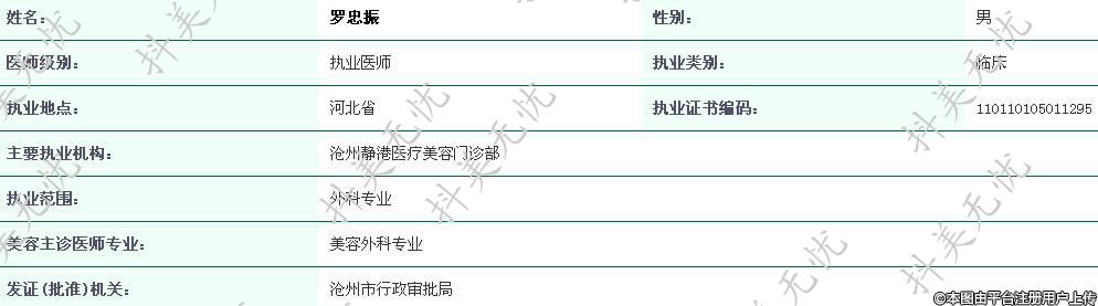 主要執(zhí)業(yè)機構(gòu):滄州靜港醫(yī)療美容門診部