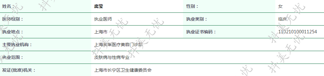 主要執(zhí)業(yè)機(jī)構(gòu):上海美萊醫(yī)療美容門(mén)診部