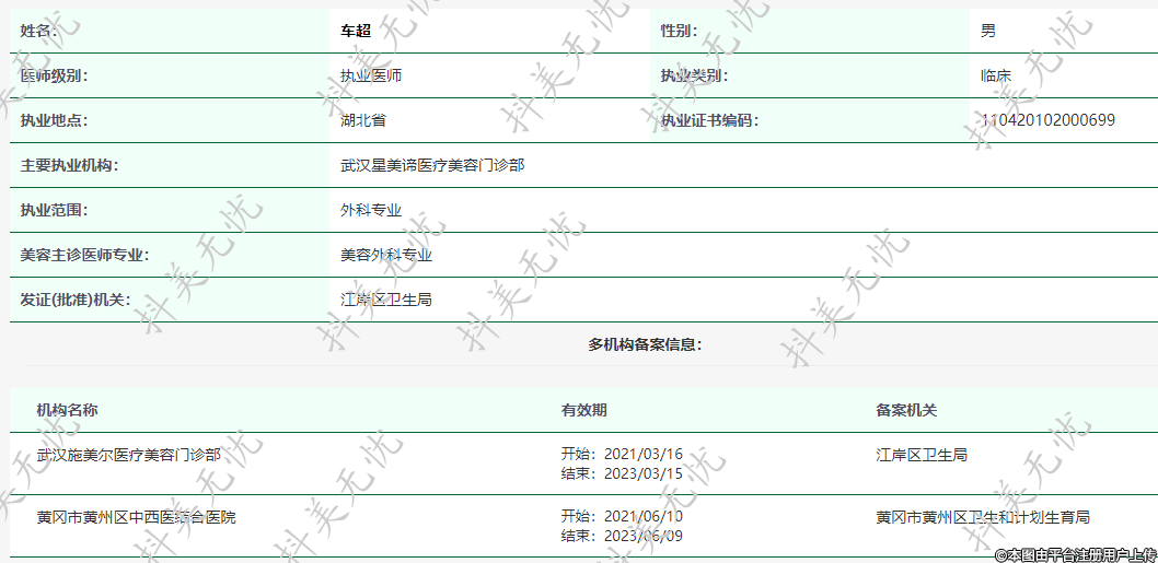 主要執(zhí)業(yè)機(jī)構(gòu):武漢星美諦醫(yī)療美容門(mén)診部