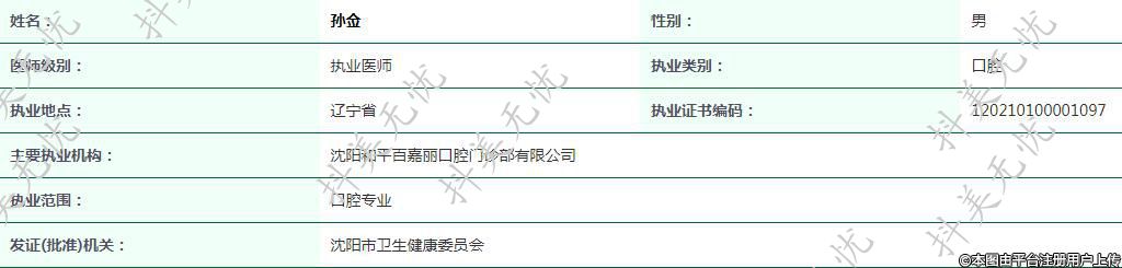 主要執(zhí)業(yè)機(jī)構(gòu):沈陽(yáng)和平百嘉麗口腔門診部有限公司