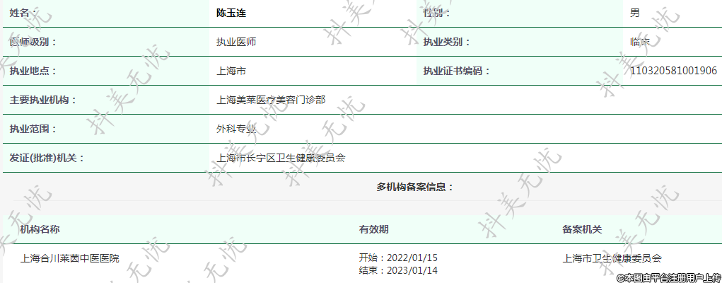 主要執(zhí)業(yè)機(jī)構(gòu):上海美萊醫(yī)療美容門診部