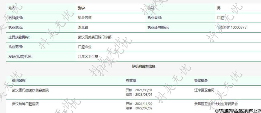 主要執(zhí)業(yè)機構:武漢麗美康口腔門診部