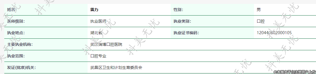 主要執(zhí)業(yè)機構(gòu):武漢瑞博口腔醫(yī)院