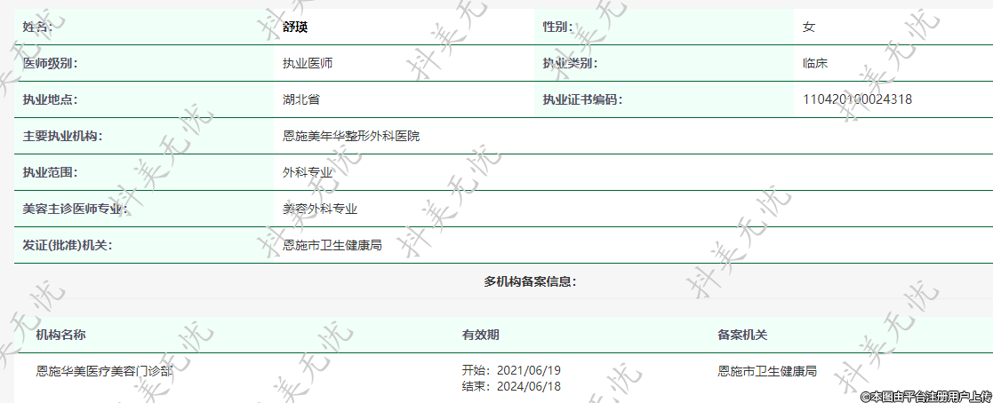 主要執(zhí)業(yè)機(jī)構(gòu):恩施美年華整形外科醫(yī)院
