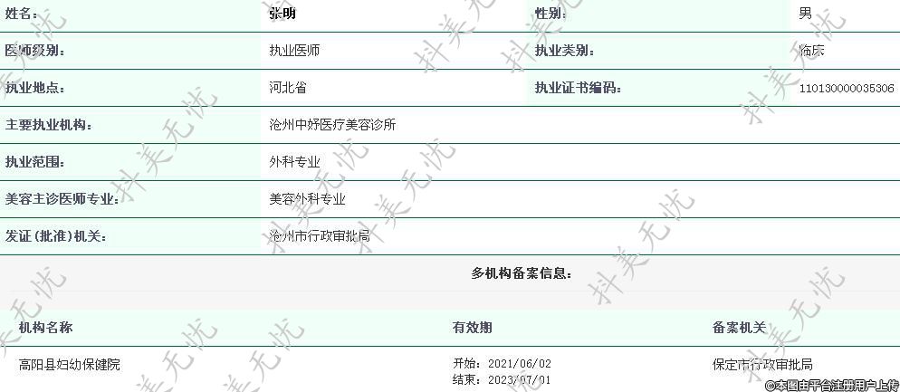 主要執(zhí)業(yè)機(jī)構(gòu):滄州中妤醫(yī)療美容診所