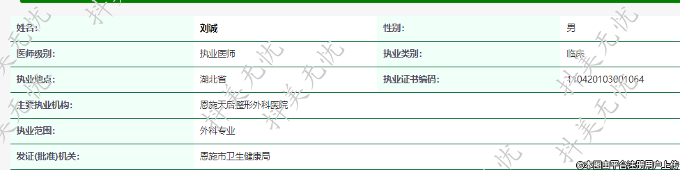 主要執(zhí)業(yè)機(jī)構(gòu):恩施天后整形外科醫(yī)院