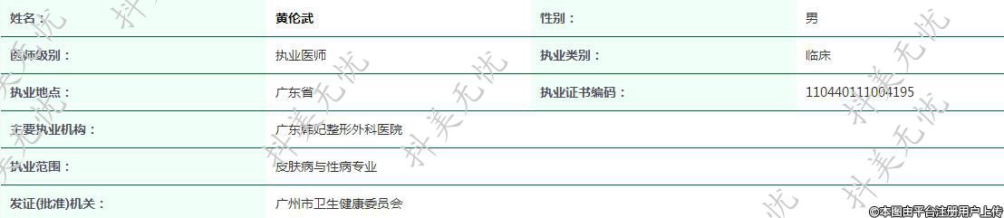 執(zhí)業(yè)范圍:皮膚病與性病專業(yè)