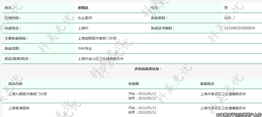 主要執(zhí)業(yè)機(jī)構(gòu):上海御顏醫(yī)療美容門診部