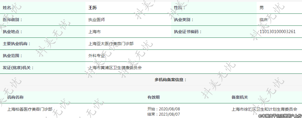 主要執(zhí)業(yè)機(jī)構(gòu):上海亞太醫(yī)療美容門診部