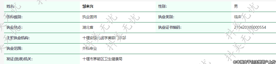 主要執(zhí)業(yè)機(jī)構(gòu):十堰安琪兒醫(yī)學(xué)美容門(mén)診部