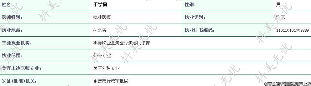 主要執(zhí)業(yè)機構(gòu):承德歐亞圣美醫(yī)療美容門診部