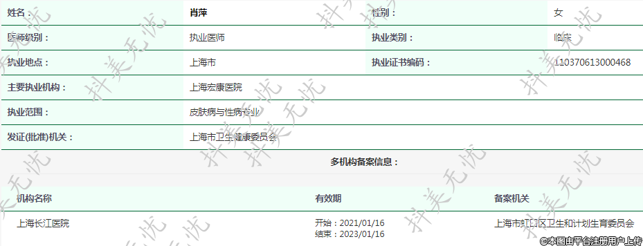 執(zhí)業(yè)范圍:皮膚病與性病專業(yè)