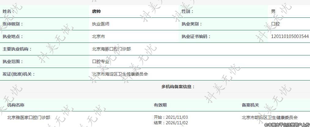 主要執(zhí)業(yè)機構:北京海豚口腔門診部