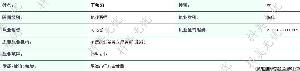主要執(zhí)業(yè)機(jī)構(gòu):承德歐亞圣美醫(yī)療美容門診部