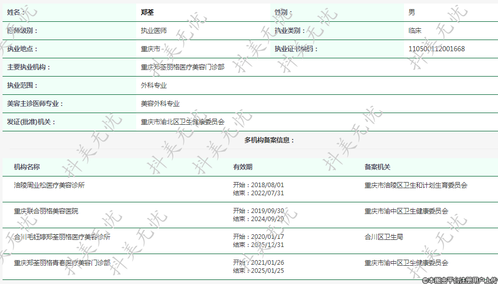 主要執(zhí)業(yè)機構:重慶鄭荃麗格醫(yī)療美容門診部