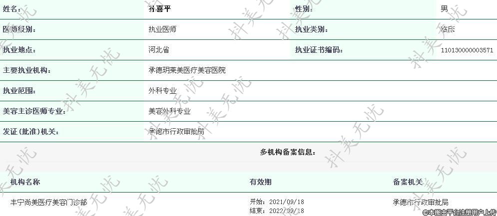 主要執(zhí)業(yè)機(jī)構(gòu):承德玥萊美醫(yī)療美容醫(yī)院