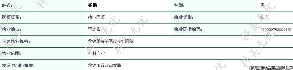 主要執(zhí)業(yè)機(jī)構(gòu):承德玥萊美醫(yī)療美容醫(yī)院