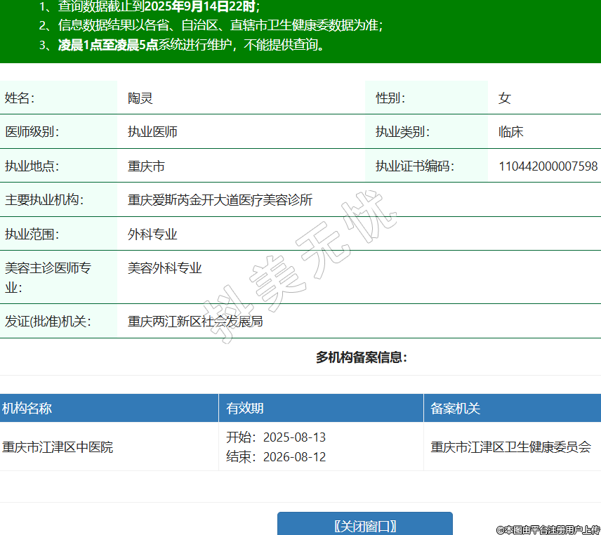 姓名:陶靈性別:女醫(yī)師級別:執(zhí)業(yè)醫(yī)師執(zhí)業(yè)類別:臨床執(zhí)業(yè)地點:重慶市執(zhí)業(yè)證書編碼:110442000007598主要執(zhí)業(yè)機構(gòu):重慶愛斯芮金開大道醫(yī)療美容診所執(zhí)業(yè)范圍:外科專業(yè)美容主診醫(yī)師專業(yè):美容外科專業(yè)發(fā)證(批準(zhǔn))機關(guān):重慶兩江新區(qū)社會發(fā)展局多機構(gòu)備案信息: