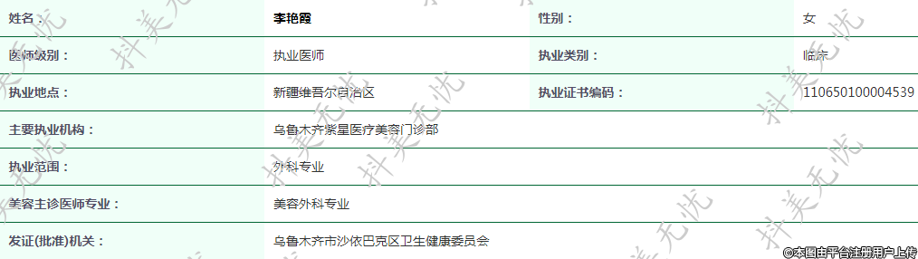 主要執(zhí)業(yè)機構:烏魯木齊紫星醫(yī)療美容門診部