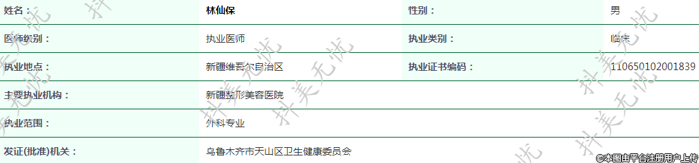 整形外科執(zhí)業(yè)醫(yī)師,醫(yī)師執(zhí)業(yè)編碼:110650102001839,畢業(yè)于新疆醫(yī)科大學(xué)臨床學(xué)
