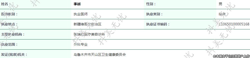 現(xiàn)任天山區(qū)新華南路張瑞紅醫(yī)療美容診所執(zhí)業(yè)醫(yī)師