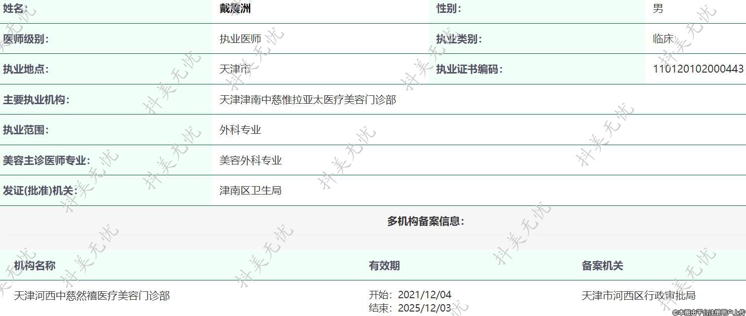 主要執(zhí)業(yè)機構(gòu):天津津南中慈惟拉亞太醫(yī)療美容門診部