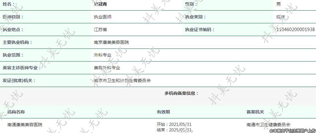 主要執(zhí)業(yè)機(jī)構(gòu):南京康美美容醫(yī)院