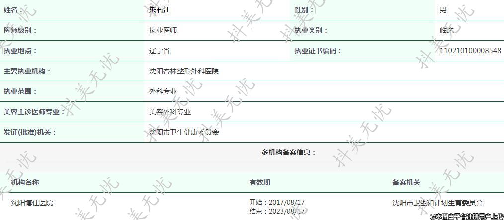 主要執(zhí)業(yè)機構(gòu):沈陽杏林整形外科醫(yī)院