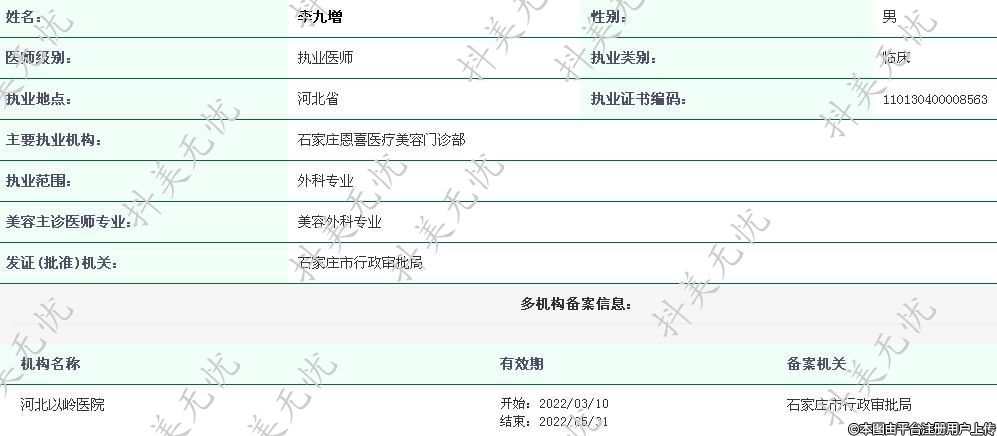 主要執(zhí)業(yè)機構(gòu):石家莊恩喜醫(yī)療美容門診部