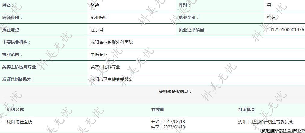 主要執(zhí)業(yè)機構(gòu):沈陽杏林整形外科醫(yī)院