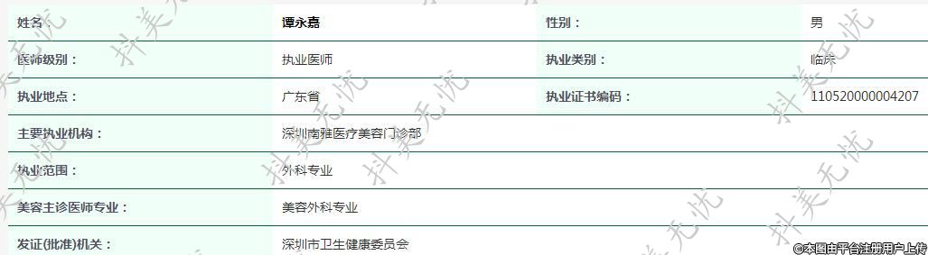 主要執(zhí)業(yè)機構(gòu):深圳南雅醫(yī)療美容門診部