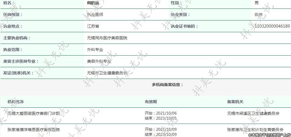 主要執(zhí)業(yè)機構(gòu):無錫同舟醫(yī)療美容醫(yī)院