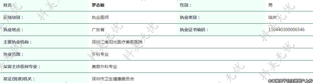 主要執(zhí)業(yè)機(jī)構(gòu):深圳江南陽(yáng)光醫(yī)療美容醫(yī)院 深圳陽(yáng)光醫(yī)療美容醫(yī)院