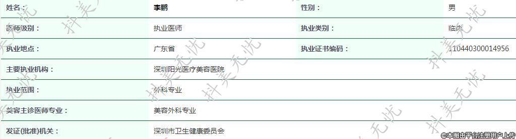 主要執(zhí)業(yè)機構(gòu): 深圳陽光醫(yī)療美容醫(yī)院
