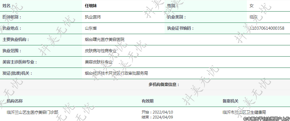 主要執(zhí)業(yè)機(jī)構(gòu):煙臺曙光醫(yī)療美容醫(yī)院