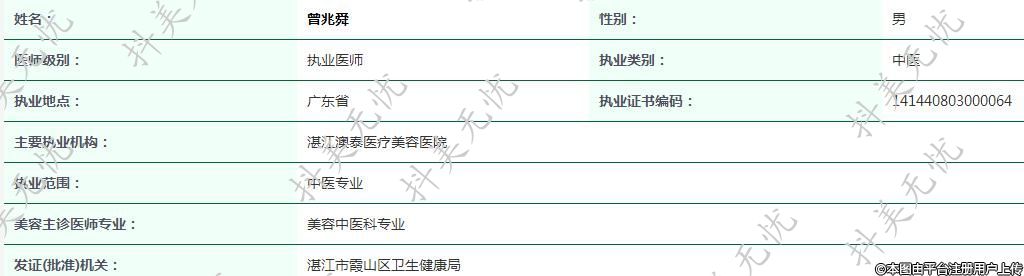 主要執(zhí)業(yè)機構(gòu):湛江澳泰醫(yī)療美容醫(yī)院