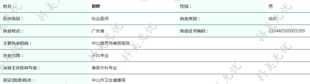 主要執(zhí)業(yè)機(jī)構(gòu):中山愛(ài)思特美容醫(yī)院