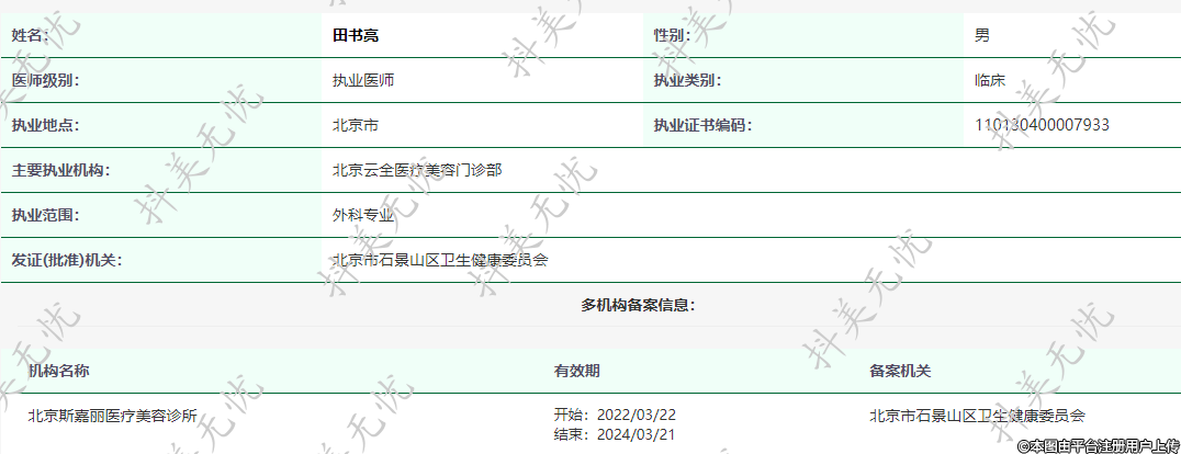 主要執(zhí)業(yè)機構(gòu):北京云全醫(yī)療美容門診部