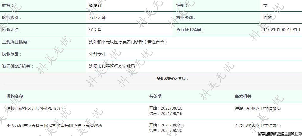 主要執(zhí)業(yè)機構(gòu):沈陽和平元辰醫(yī)療美容門診部(普通合伙)
