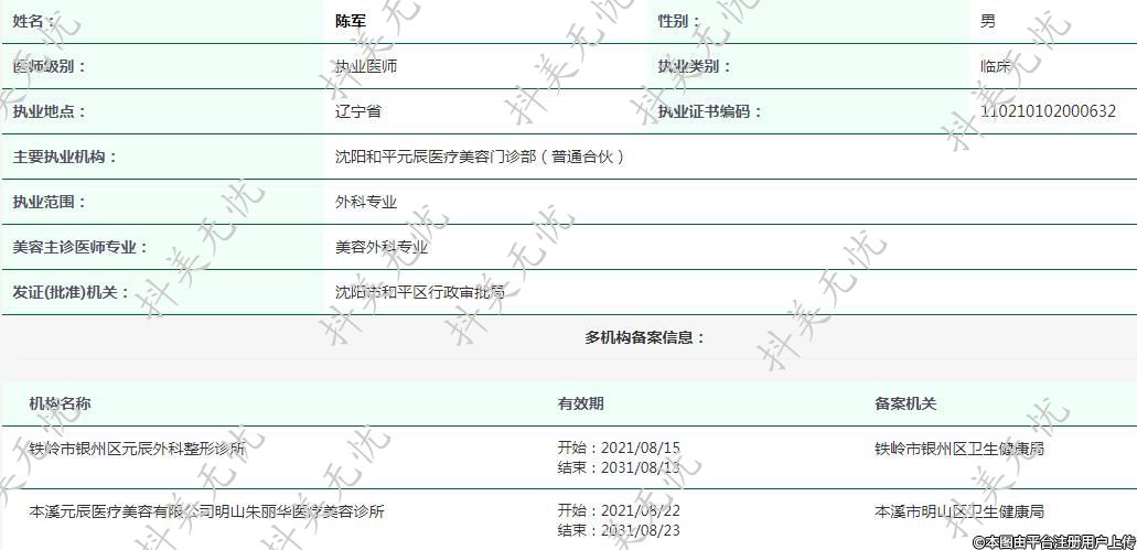 主要執(zhí)業(yè)機(jī)構(gòu):沈陽(yáng)和平元辰醫(yī)療美容門診部(普通合伙)