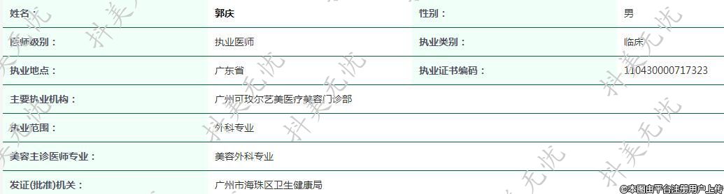 姓名:郭慶性別:男醫(yī)師級別:執(zhí)業(yè)醫(yī)師執(zhí)業(yè)類別:臨床執(zhí)業(yè)地點:廣東省執(zhí)業(yè)證書編碼:110430000717323主要執(zhí)業(yè)機(jī)構(gòu):廣州可玫爾藝美醫(yī)療美容門診部執(zhí)業(yè)范圍:口外科專業(yè)美容主診醫(yī)師專業(yè):美容皮膚科專業(yè)發(fā)證(批準(zhǔn))機(jī)關(guān):廣州市海珠區(qū)衛(wèi)生健康局文章內(nèi)容來源:國家衛(wèi)生健康委員會