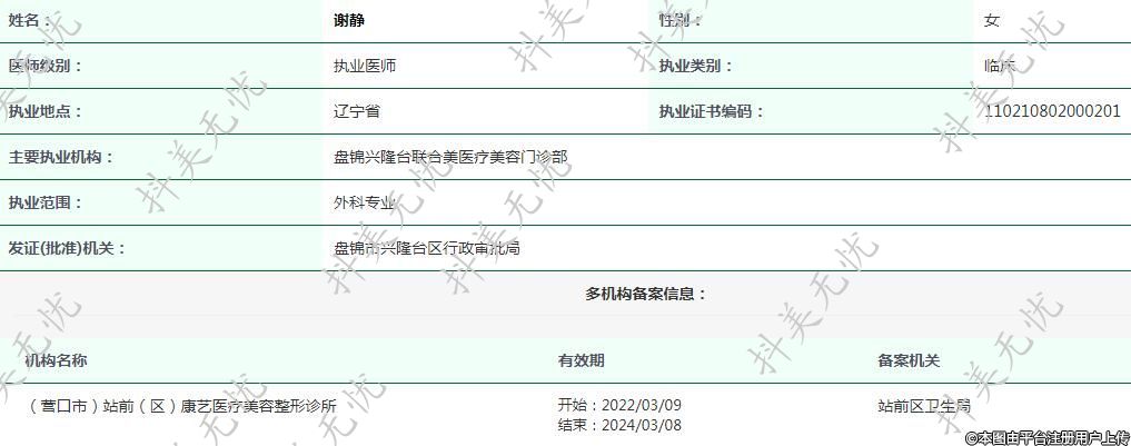 主要執(zhí)業(yè)機(jī)構(gòu):盤(pán)錦興隆臺(tái)聯(lián)合美醫(yī)療美容門(mén)診部