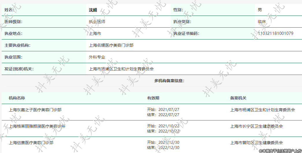 主要執(zhí)業(yè)機(jī)構(gòu):上海名媛醫(yī)療美容門診部