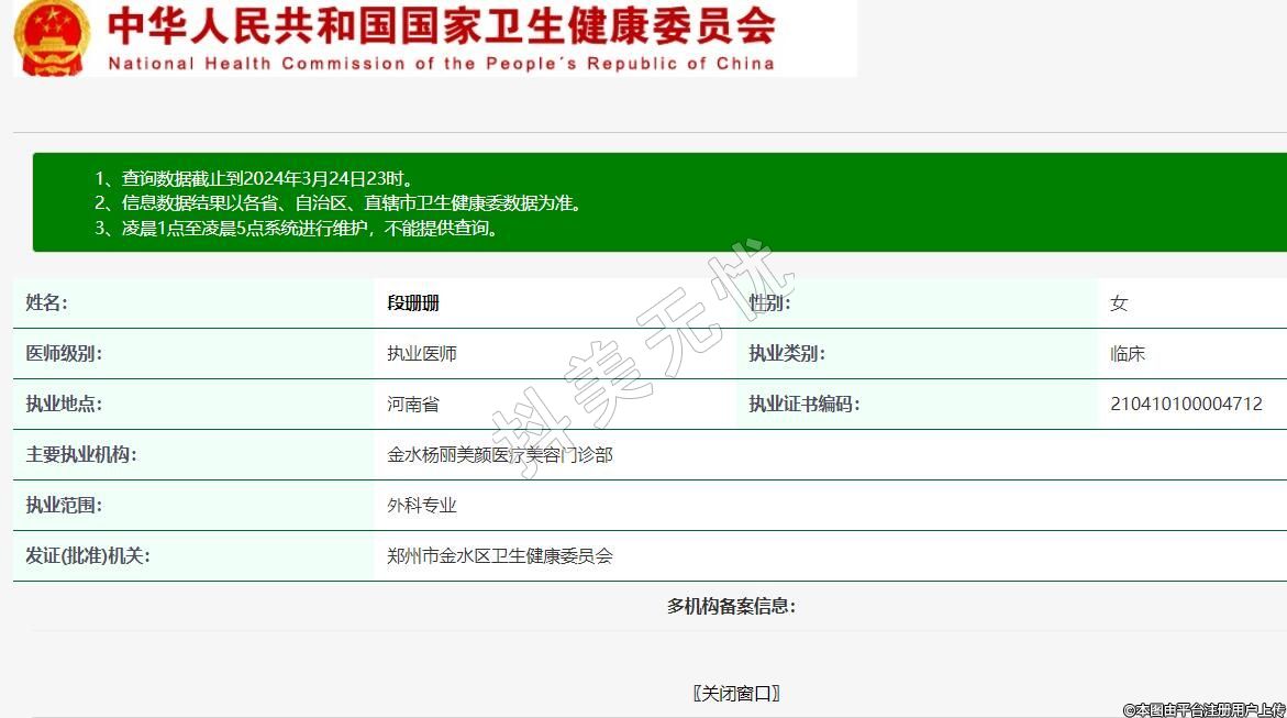 主要執(zhí)業(yè)機構(gòu):金水楊麗美顏醫(yī)療美容門診部