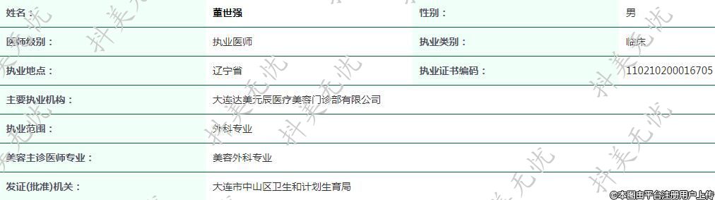 主要執(zhí)業(yè)機(jī)構(gòu):大連達(dá)美元辰醫(yī)療美容門診部有限公司