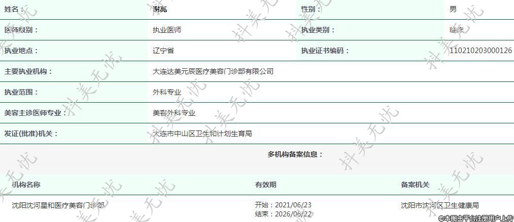 主要執(zhí)業(yè)機(jī)構(gòu):大連達(dá)美元辰醫(yī)療美容門診部有限公司