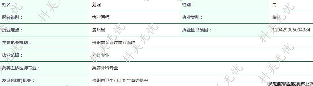 主要執(zhí)業(yè)機構:貴陽美萊醫(yī)療美容醫(yī)院