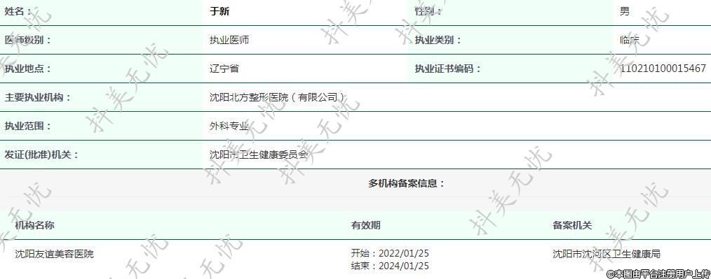 主要執(zhí)業(yè)機構:沈陽北方整形醫(yī)院(有限公司)