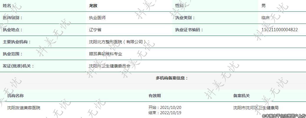 主要執(zhí)業(yè)機構:沈陽北方整形醫(yī)院(有限公司)