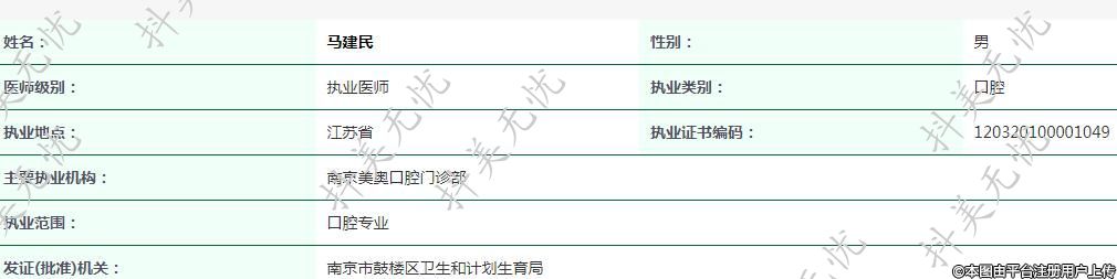 主要執(zhí)業(yè)機(jī)構(gòu):南京美奧口腔門(mén)診部